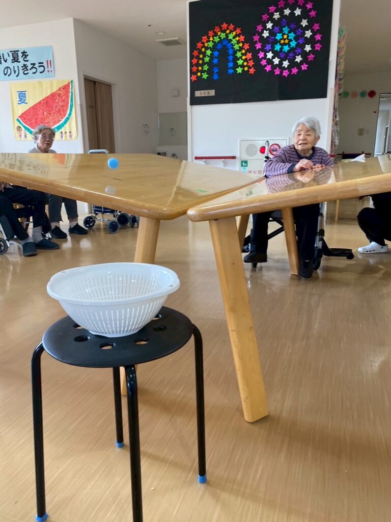 傾いている机にピンポン玉をバウンドさせ、カゴに入れていただきました^ ^