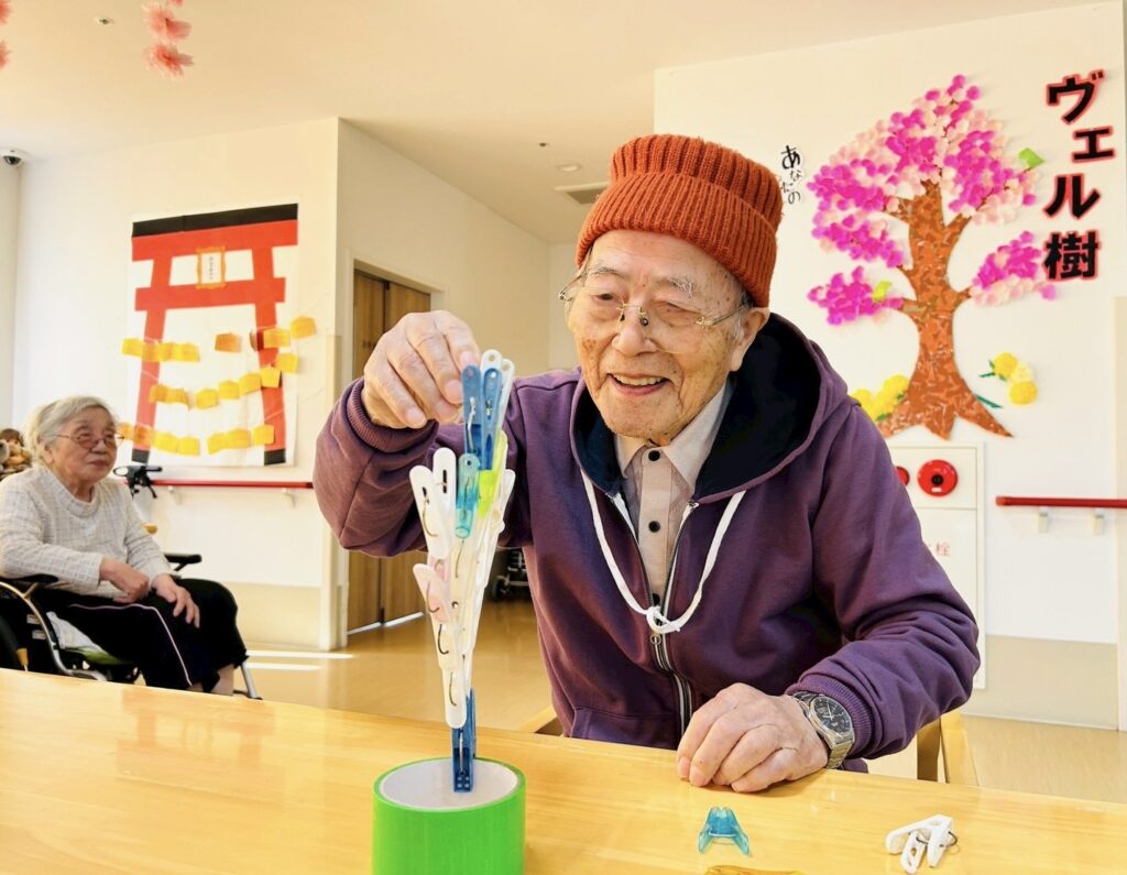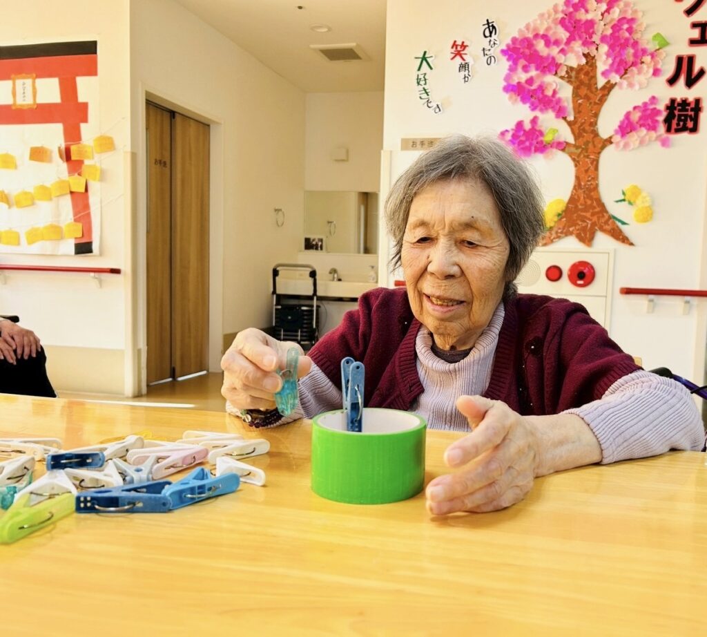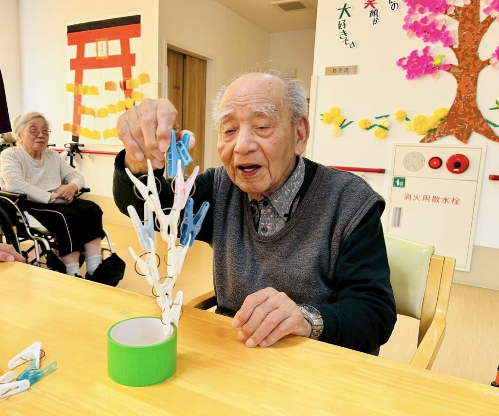 なので本日のレクリエーションは利用者様にバランスを保ちながら高く積み上げていただこうと思います。